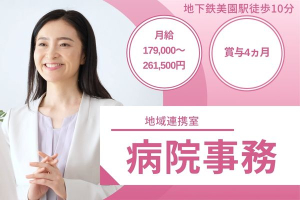 【札幌市豊平区・美園駅徒歩10分】月給179,000〜261,500円/賞与4ヶ月/年間休日120日!福利厚生充実/地域医療連携事務/春林会華岡青洲記念病院/地域医療連携事務