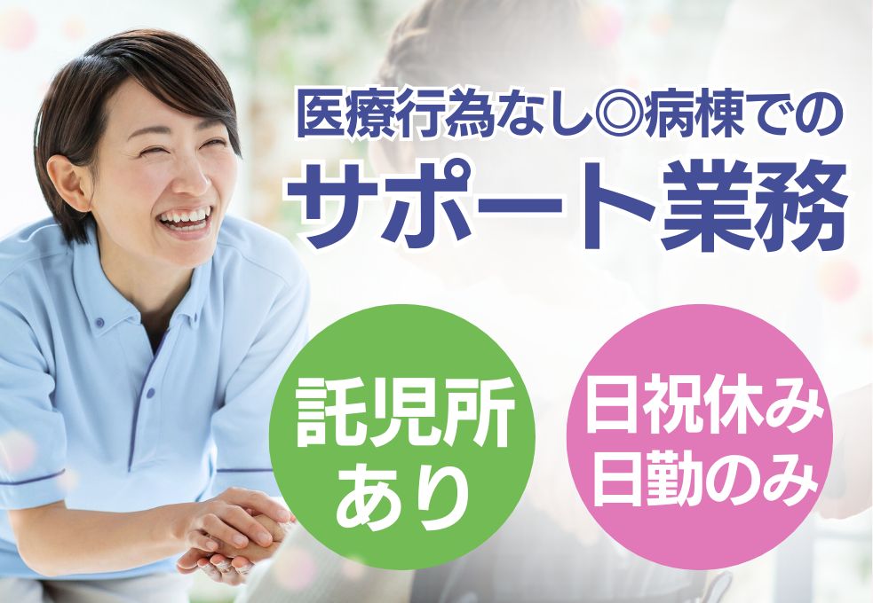 【日勤のみOK×日祝休み完全週休2日制】未経験から“医療のしごと”へ♪ 託児所ありで子育て世代も安心して続けられる看護助手スタッフ募集◎