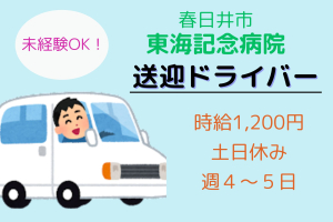 《春日井市/東海記念病院》年齢不問・普通免許でOK★未経験歓迎の通所リハ送迎ドライバー募集!短時間&土日休み♪