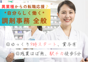 \船橋駅より徒歩5分!正社員デビューのチャンス☆/年間休日120日以上の、駅チカの調剤薬局◎日祝お休みで残業はほぼなし♪