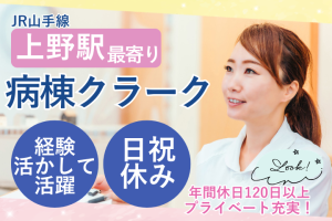 【上野/新御徒町から徒歩圏内】医療事務経験を活かす*総合病院で安定&日祝休みの病棟クラーク募集♪