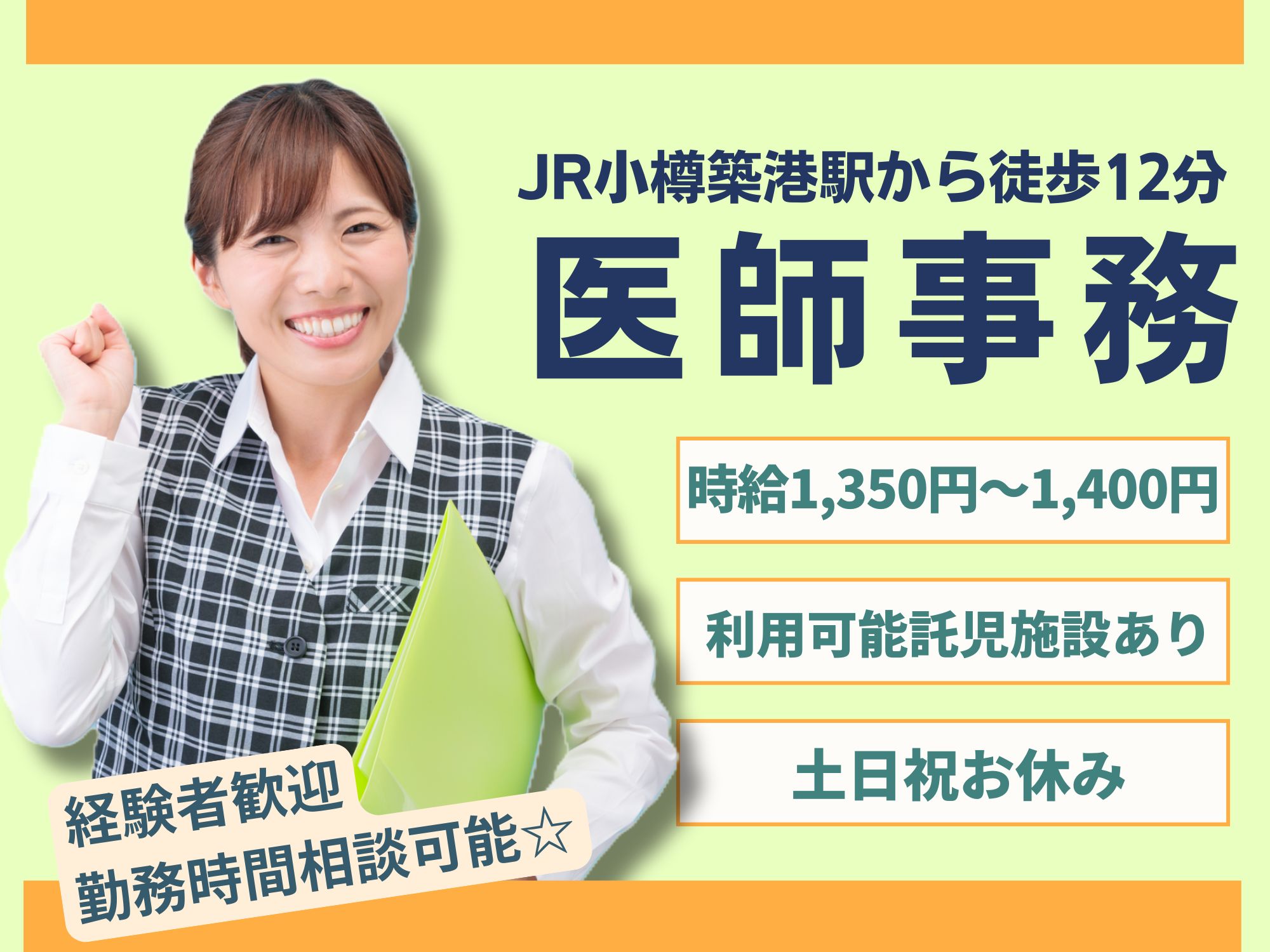 【JR小樽築港駅から徒歩12分】病院での事務経験がある方相談可能/時給1,350円~1,400円/土日祝休み◎年間休日124日/医師事務作業補助者/北海道済生会小樽病院