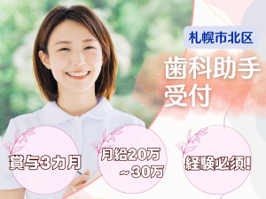 【札幌市北区】歯科での歯科助手経験必須!月給200,000円~300,000円/賞与3カ月!昇給あり◎福利厚生充実!