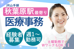 秋葉原駅徒歩1分◆週1日からOK!ブランク歓迎のクリニック医療事務