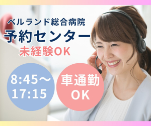 未経験歓迎◎ベルランド総合病院で受付&美容窓口☆時給1250円~+交通費/日祝休・残業ほぼなし