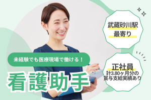 【武蔵砂川駅・車通勤OK】未経験・ブランク歓迎◇賞与3.8ヶ月分◎安定正社員の看護助手*40~50代活躍中!