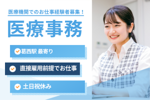 【葛西駅徒歩3分】未経験からはじめる医療事務*資格を活かして活躍!週休2日・年休120日以上で私生活も充実