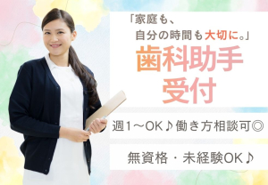 「家庭も、自分の時間も大切に。」 週1日~OK◎未経験から始める歯科助手・受付のお仕事♪