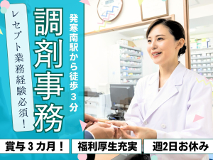 【発寒南駅から徒歩3分】経験必須!月給180,600円~200,000円/賞与3か月/昇給あり/週2日お休みあり/育児休業取得実績あり/キタ調剤薬局 発寒南店/調剤事務