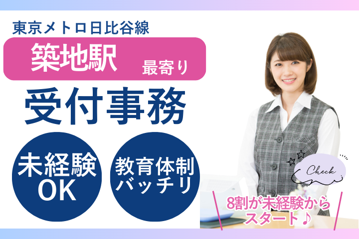 【築地・新富町駅徒歩5分】未経験から始める大学病院受付★充実の研修&職場環境◎
