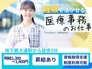 【天下茶屋駅から徒歩3分】経験者優遇&年休120日以上◎スタッフ利用無料のジムも完備!メリハリつけて働ける医療事務正社員