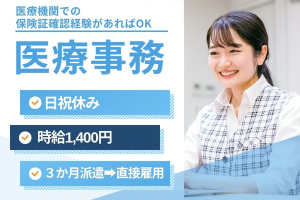 【札幌市中央区/徒歩1分】経験浅めOK*医療事務スタッフ募集!時給1,400円+交通費全額支給&残業ほぼなし♪