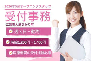 時給1200円以上!週3日~OK!新規OPENのクリニックで医療事務*経験活かして働くチャンス◎車通勤&無料駐車場あり