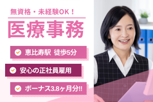 【恵比寿駅徒歩5分】資格不要◎40代活躍中!賞与年2回で安定正社員*女性活躍中の医療事務
