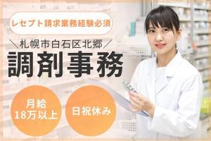 【札幌市白石区】賞与あり・福利厚生充実/調剤事務経験者歓迎*日・祝休み&残業ほぼなしで働きやすさ◎