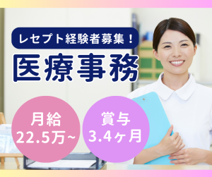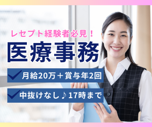 【新長田駅徒歩5分】経験を活かして医療事務*賞与3ヶ月&月給20万円以上/正社員募集!