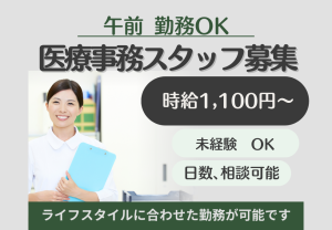 有資格または医事勉強中の方歓迎★午前のみ・週4日も相談OK★駅チカ&車通勤可